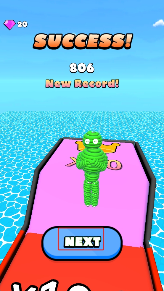 3、冲过终点线后,界面会弹出本次奔跑数据,这里我们点击蓝色的NEXT按钮,进入下一关挑战。