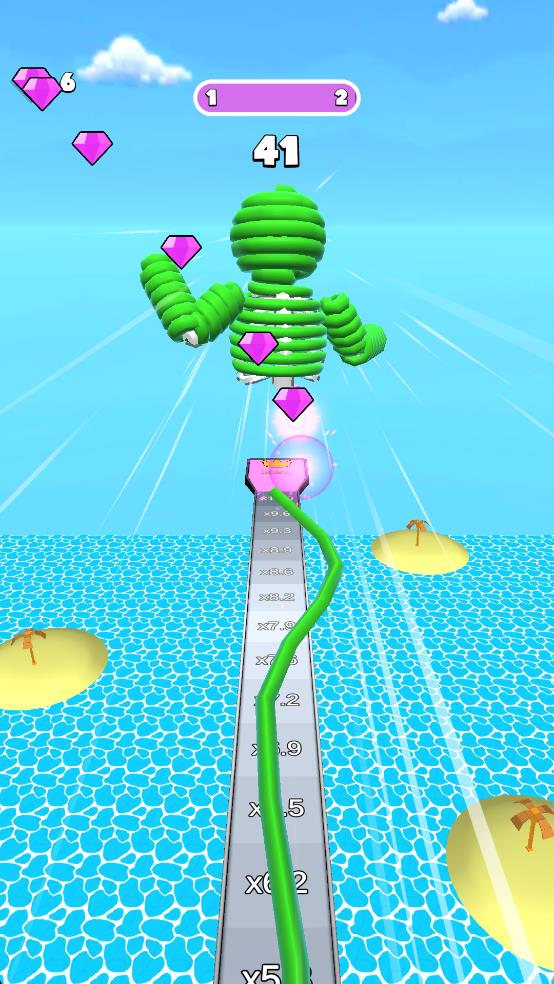 1、绳索勾连前进:在奔跑中观察线团分布,点击屏幕两侧抛出对应方向的绳索,勾住后借助拉力加速或跨越障碍,松开屏幕即可收回绳索。