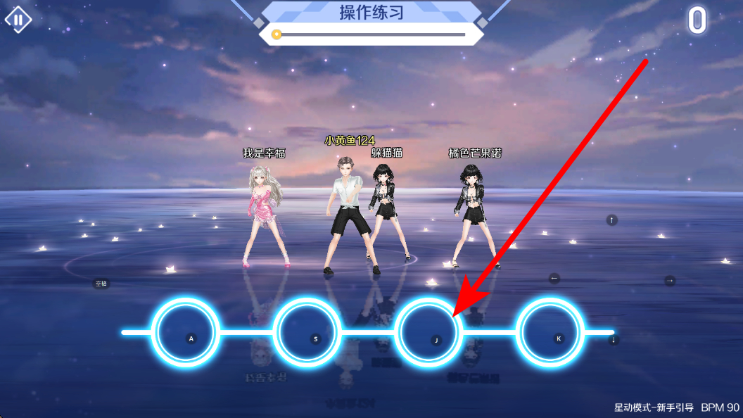 2、新手阶段有操作练习,如星动模式,按屏幕提示,在音符到达对应按键A、S、J、K等时点击,熟悉节奏与操作,为正式演奏打基础。
