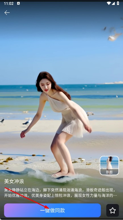 3、选中模板后,进入详情页,点击一键做同款,上传自己的照片,利用辅助工具实现照片的创意编辑,添加智能特效等,完成编辑后,可保存或分享。