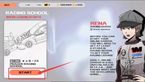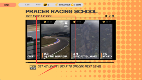 1、轻触start按钮开启竞速之旅,进入游戏主界面选择赛事模式。