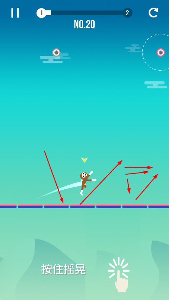 2、按住屏幕摇晃角色,调整摆动方向与力度,适配路径,避障并衔接下一个节点。