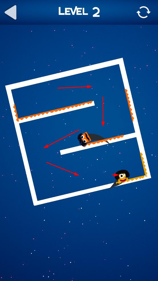 2、调整场景角度,引导角色避障并向彼此移动,达成团聚,推进LEVEL 1、2等关卡。