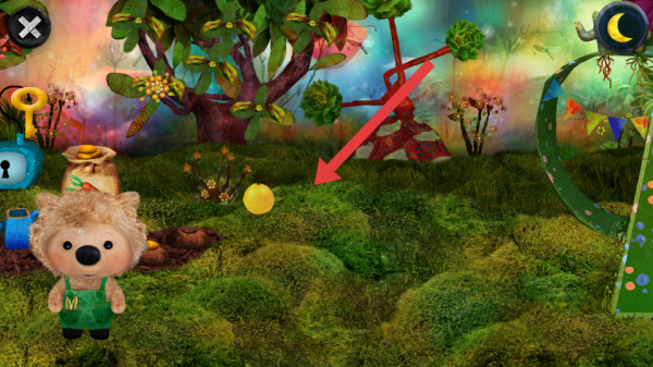 1、进入游戏场景,观察画面里的铲子、水壶、带锁容器等元素,点击互动道具,开启森林探索,挖掘场景隐藏玩法。