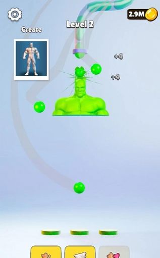 3、按目标雕像的外形与色彩,逐步推进创作,泥团形态匹配目标雕像时完成关卡,解锁新雕像与喷色种类。