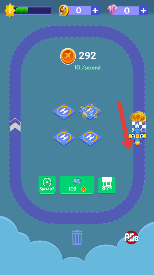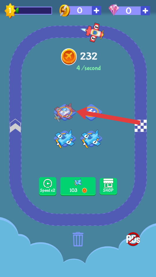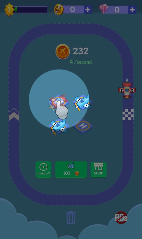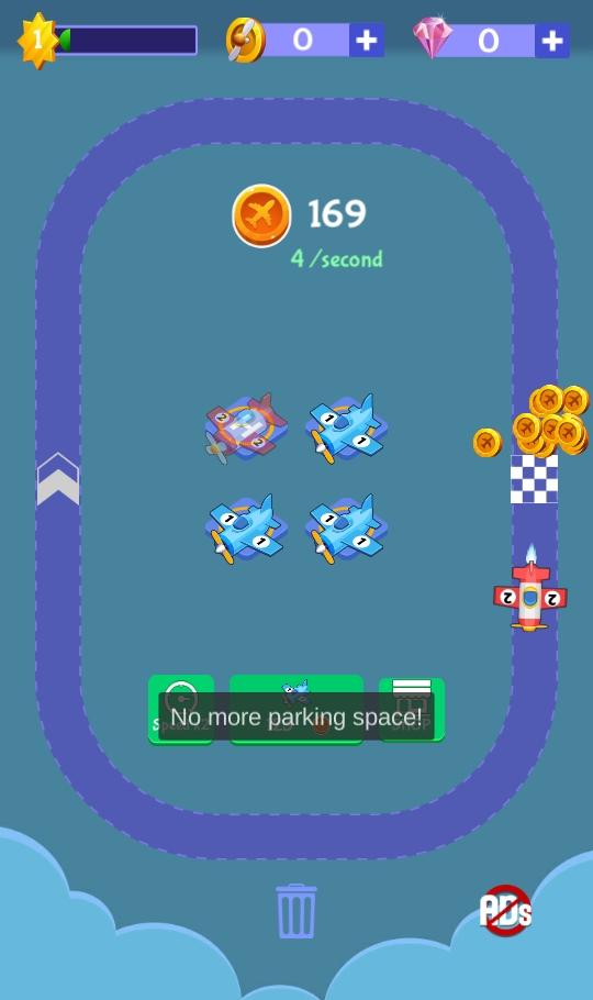 3、持续合成更高级飞机,铺满轨道上的停机位标识,增加轨道运行飞机数量,提升每秒的产出。