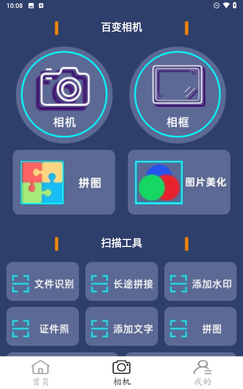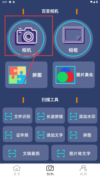 2、打开百变相机界面,点击相机功能,进入拍摄模式,可进行照片拍摄创作,点击拍照。