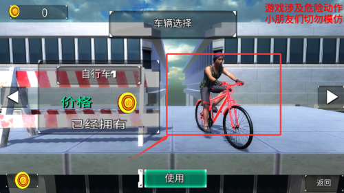 3、在车辆库中浏览各类山地自行车,根据赛道特点挑选最适合的车型进行比赛。