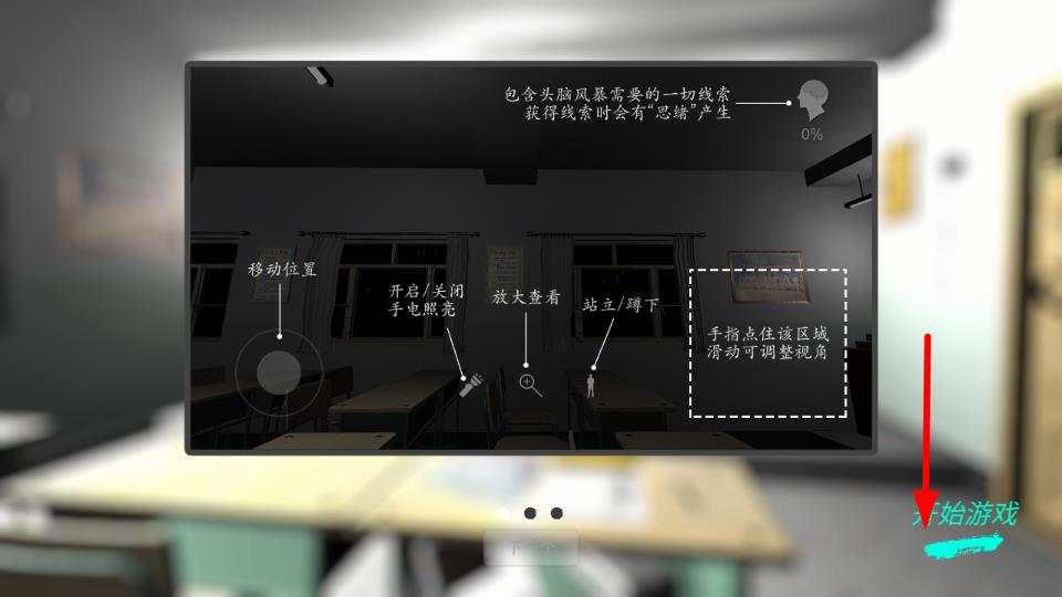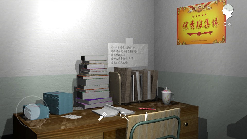 1、进入游戏后,置身于长庄镇小学的调查场景,通过点击交互查看教室、办公室等区域的物品,收集散落在各处的线索道具。