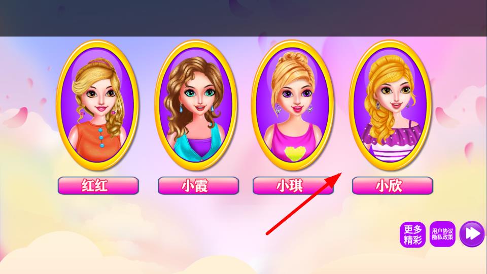 3、全部装扮完成后,可欣赏芭比公主的整体造型,也可以重新选择其他公主进行装扮,解锁更多护理和化妆的小技巧,提升装扮的熟练度。