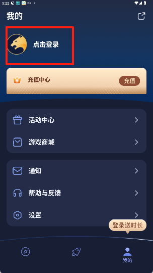 3、进入个人中心后,点击上方即可进入登陆界面。