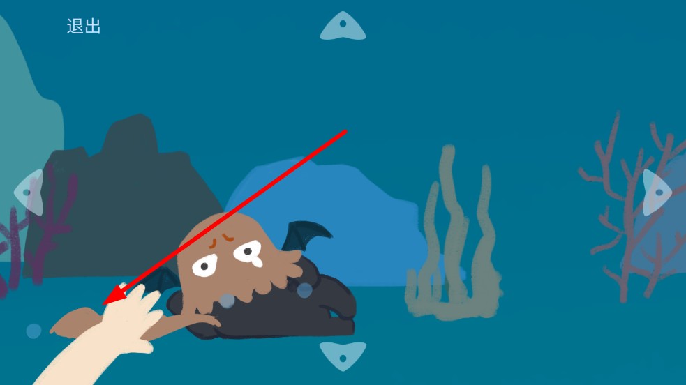1、标题界面点击新游戏进入海底,跟随引导,拖动手指,控制移动方向,触发初始剧情,帮它挣脱礁石束缚。