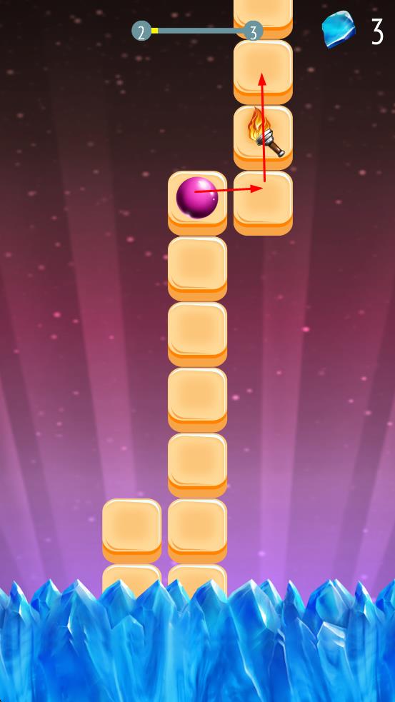 1、操控紫色滚珠沿方块路径滚动,撞击方块使其消除,推进关卡。