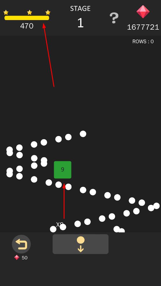 1、调整发射角度,发射弹球,撞击带数字的彩色方块,使其数值递减。