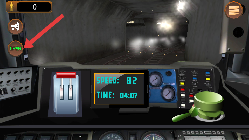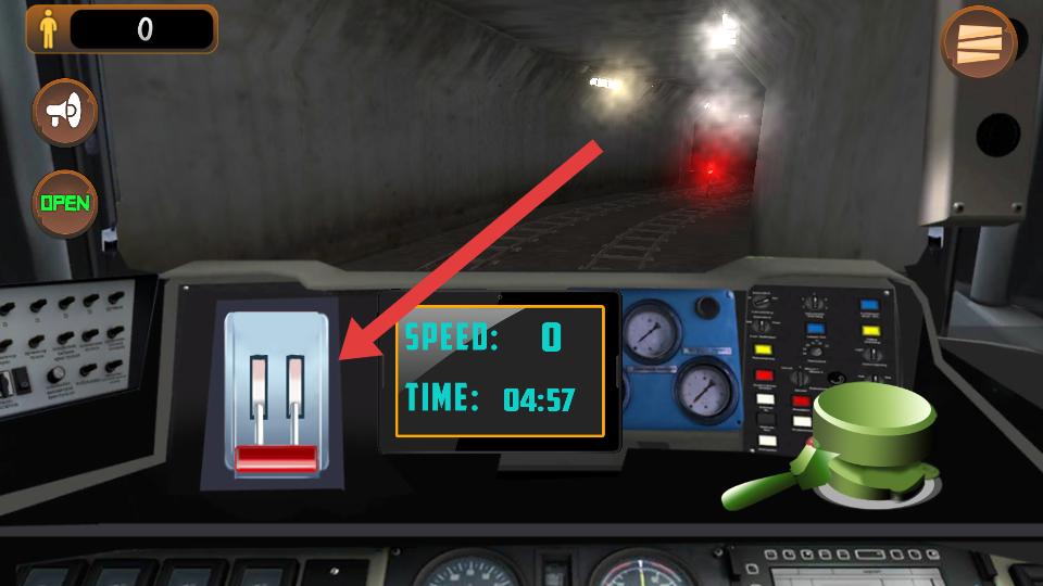 1、进入游戏,熟悉驾驶台元素,点击左侧OPEN按钮,触发前期操作的流程,准备开始启动火车。
