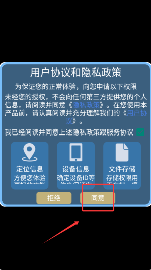 1、首次启动需阅读并确认用户协议条款,勾选同意选项后自动跳转至主界面。