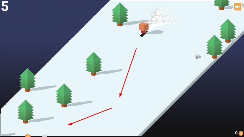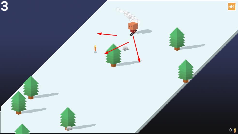 1、控制小人躲避障碍:玩家通过简单操作控制小方盒在雪地中滑雪,根据前方实时出现的树木等障碍物,及时调整小方盒的行进方向或做出跳跃、躲闪动作。