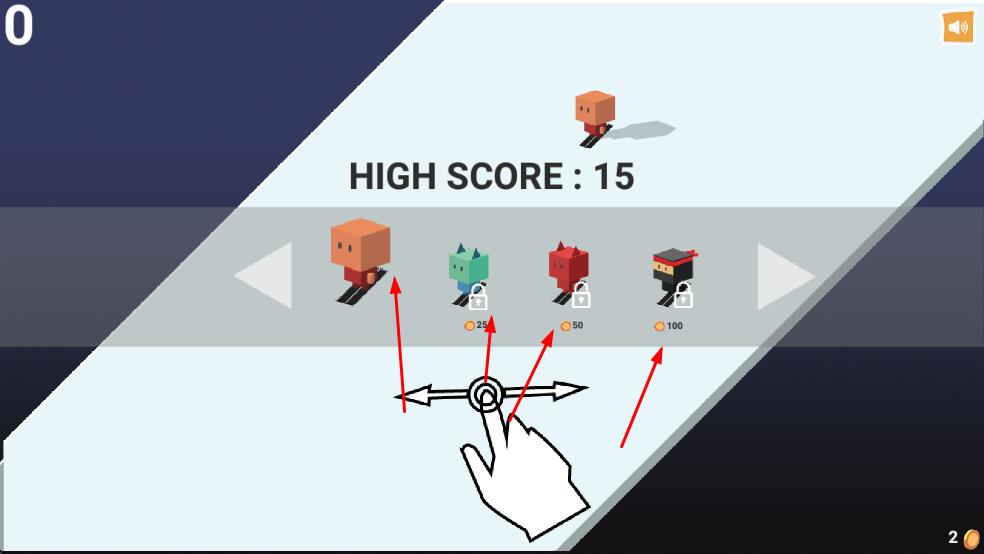 2、达成分数目标后,解锁新角色绿怪、红魔、忍者,需25/50/100金币。