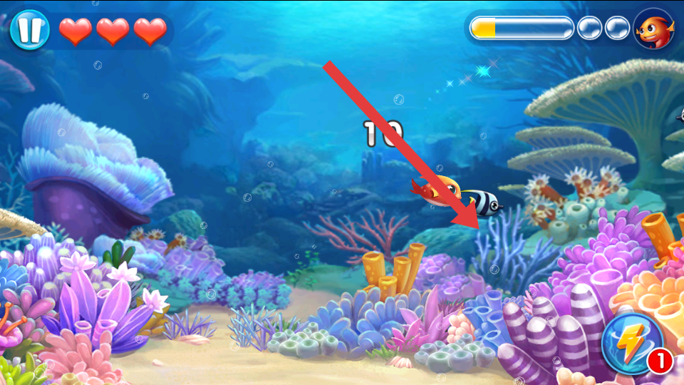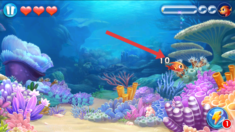 2、遇到黑白条纹鱼群,优先选择体型小、数字低的鱼吃,避免被大鱼攻击,同时关注右上角能量条。