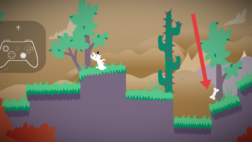 3、看到发光物品灯泡、骨头,引导了小狗靠近收集,解锁新的区域或者剧情,遇到控制器的提示。