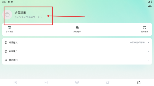 3、打开个人页,点击登录入口完成登录,记录学习状态,使用学习日历等功能管理学习进程。
