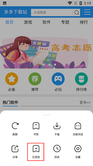 4、可以点击下方添加书签,保存你喜欢的网址。