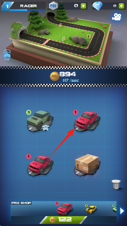 1、合并赛车升级:将拥有的两辆相同级别的赛车进行合并,获得一辆更高级别的赛车,不断重复这一过程,解锁越来越高级的车型,提升赛车的整体品质。