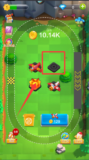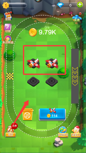 1、刚开始先买两个相同的低级飞机,把它们拖到一起就能合成更高级的,升级后能赚更多金币。