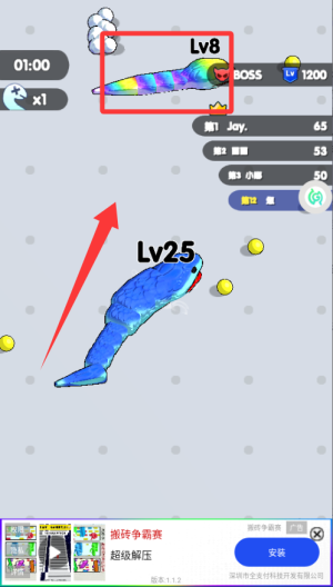 2、看到别的蛇蛇时注意绕行,特别是长的对手,别靠太近,找机会绕到对方前面截断路线。