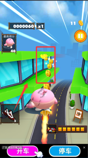 2、路上尽量多捡金币,遇到加速道具或磁铁记得使用,能自动吸金币还能冲得更远。