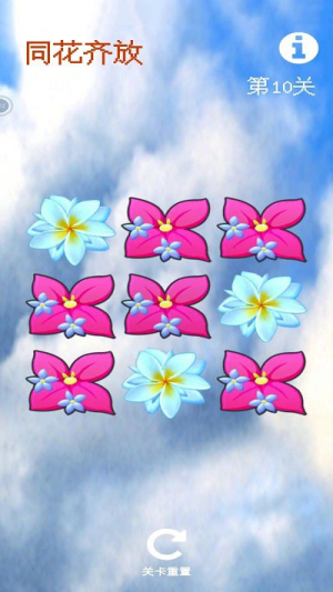 2、玩法简单有趣是该游戏的一大特色,玩家只需不断点击花朵,将所有花朵变成同一种颜色就能完成闯关,轻松享受闯关的乐趣。