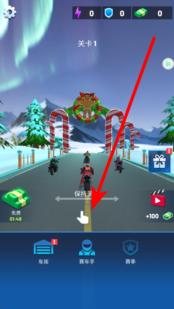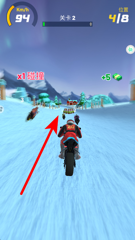 1、进入游戏界面,点击赛车手开启对应关卡,在赛道上紧盯路线保持骑行轨迹,借助操作按钮精准控制摩托方向,全力避开碰撞,争取领先位置。