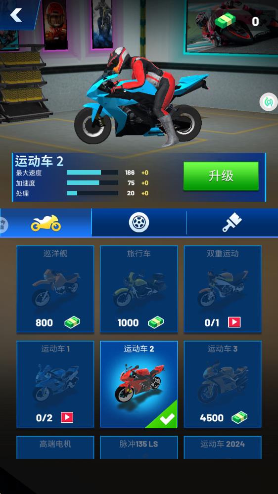 2、车辆升级养成:用比赛获得的金币、材料,对摩托车的发动机、刹车、轮胎等进行升级,提升车辆速度、加速度、操控稳定性等属性,为后续高难度赛道做准备。