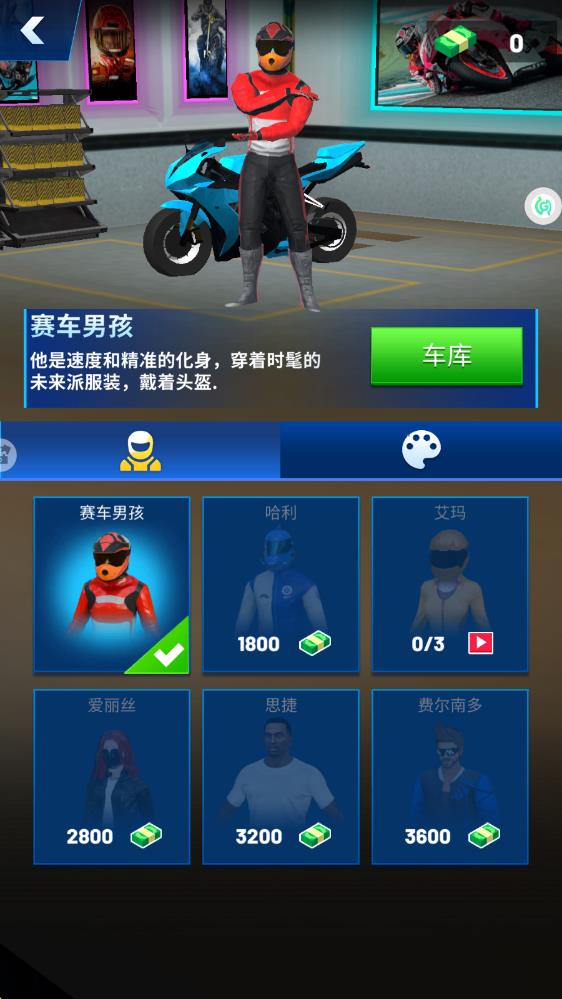 2、丰富车辆选择:提供多种摩托车,从轻便街车到重型越野摩托,各车型性能外观不同,玩家个人喜好挑选,还能通过升级提升车辆速度、操控等属性。