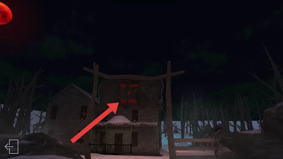 2、进入游戏场景,先关注标有The Curse of Evil Emily木牌,其对应房屋为核心探索区域,开始初步侦查。