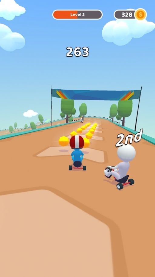 3、按照赛道方向操控三轮车,顺利通过弯道,持续前进,完成当前等级的赛道挑战,抵达终点进入下一级【Level2】。
