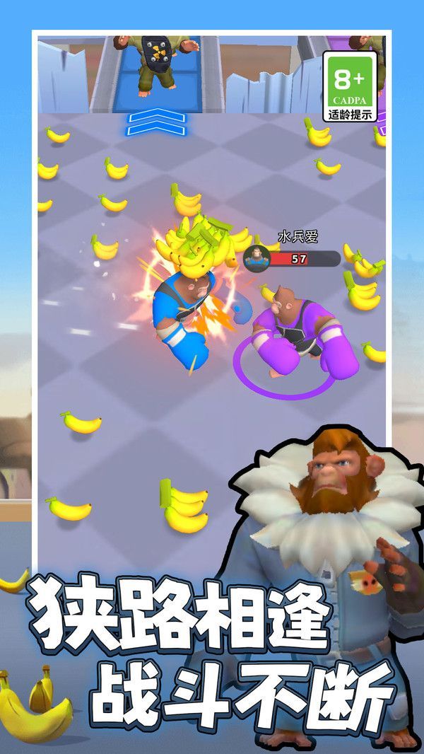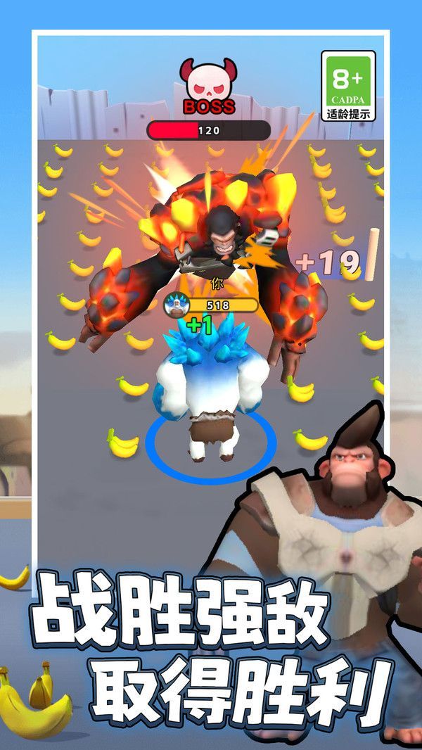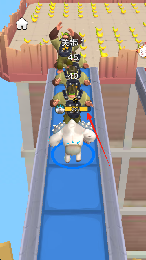 2、收集一定数量香蕉后,角色会发生变身如变成白色巨兽,利用变身优势继续前进。