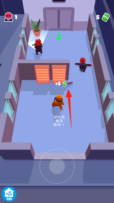 2、当靠近敌人后,根据提示【移动至身边击杀】,快速点击攻击按钮将敌人消灭,获取掉落的金钱。