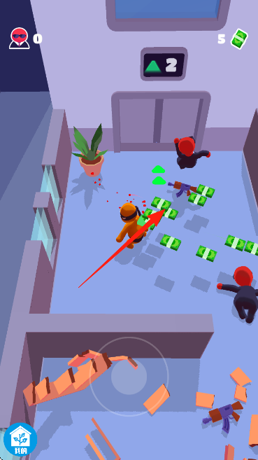 3、持续按照此方法,逐个清理关卡内的黑衣敌人,收集沿途金钱,最终完成关卡,顺利通关。