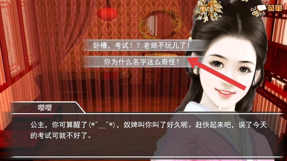 2、古代房间遇嘤嘤时,根据选项如考试!?老娘不玩儿了等选择,不同选择将会影响后续的剧情。