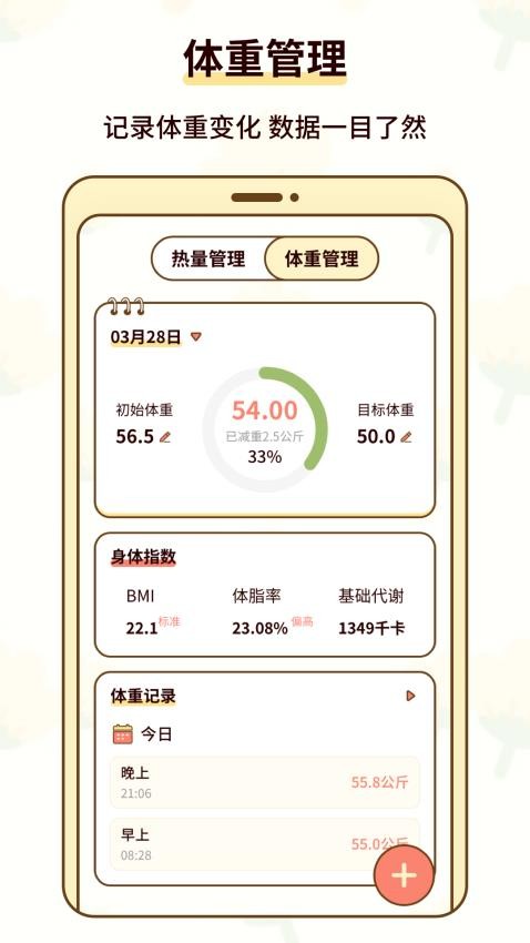 3、记录数据复盘调整减肥计划:每周查看体重变化与热量摄入记录,适当减少摄入或增加运动时长,通过数据反馈动态优化计划,提升减肥效果。