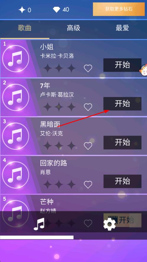 1、曲库选择与开始:在主界面浏览曲库,按风格或难度筛选歌曲,点击选中后查看歌曲信息,确认开始后等待节奏条加载,准备进入闯关状态。