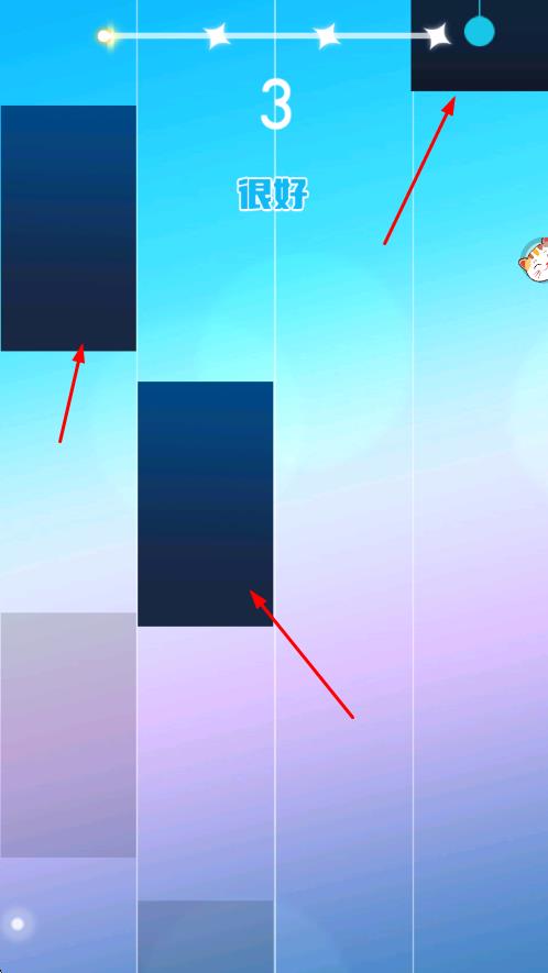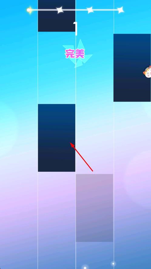2、黑块点击操作:黑块随音乐节奏从屏幕上方匀速落下,当黑块到达屏幕底部判定线时,用指尖点击对应位置,确保在时限内完成且不触碰白块。