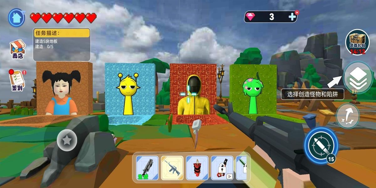 3、多样枪械对抗:提供多种枪械供使用,不同枪械有独特攻击方式与威力,玩家需根据怪物特点选择合适枪械,增强对抗的策略性与爽快感。