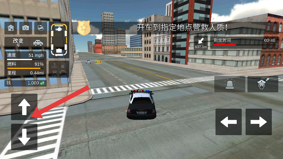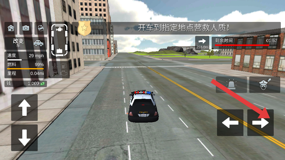 3、如果需要快速通行,点击右侧警灯按钮,触发优先通行效果游戏可让车辆避让 ,保持燃料99%以上。