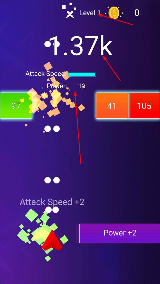 3、持续撞击积累分数,关注上方攻击速度条,推动等级提升,达成关卡挑战目标。