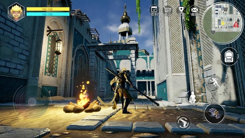 2、移动时熟悉按钮:跑步键加速赶路,拳头键可试战斗遇到敌人点击,完成跟随指引领任务,解锁主线。