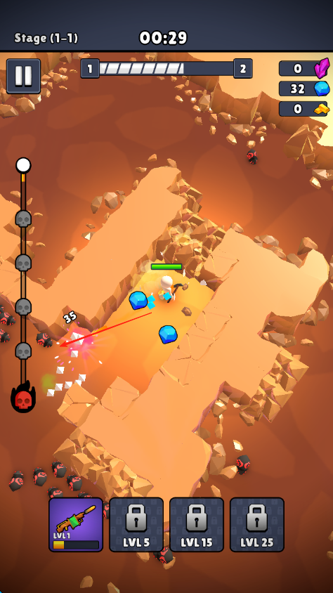 3、持续战斗,一边消灭不断涌现的敌人,一边探索地图收集资源,提升枪械等级,完成关卡目标。