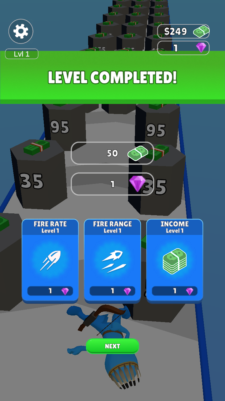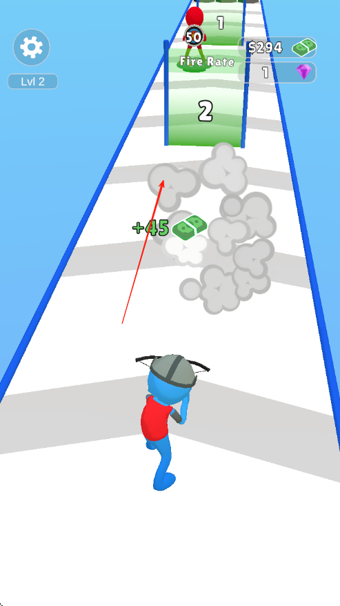 3、利用收集到的金钱,在途中遇到的升级区域,提升角色能力,像【FireRate】,突破关卡障碍,向终点奔跑。