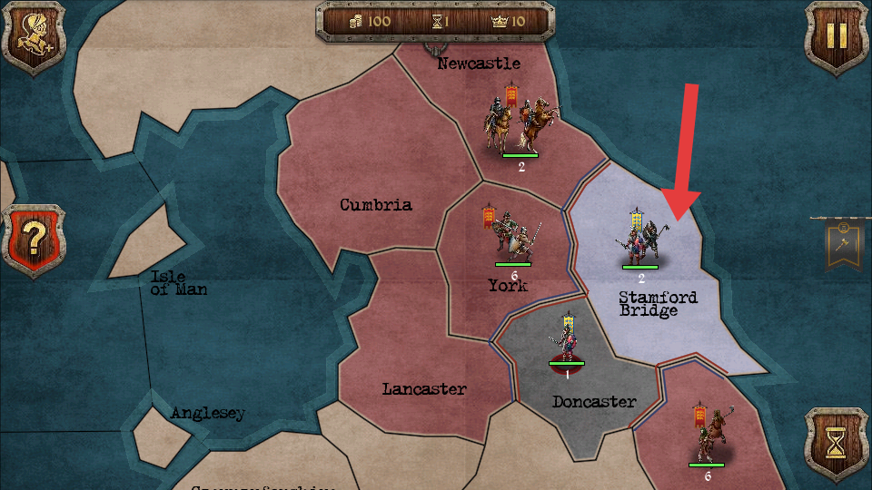 1、进入游戏后,优先点击地图上无主或敌方城镇如York、Doncaster,成功占领后可获取金币资源,是后续招兵基础。